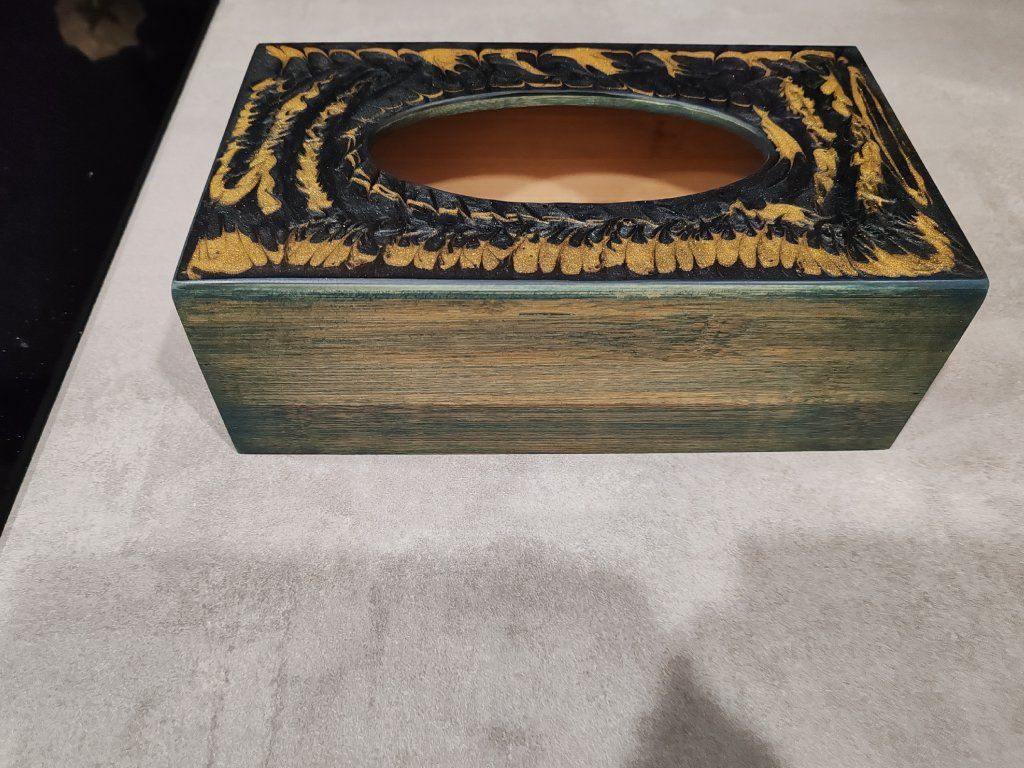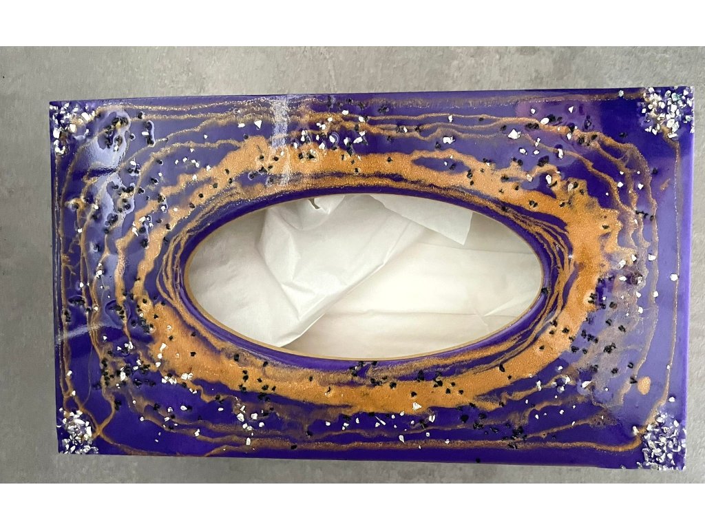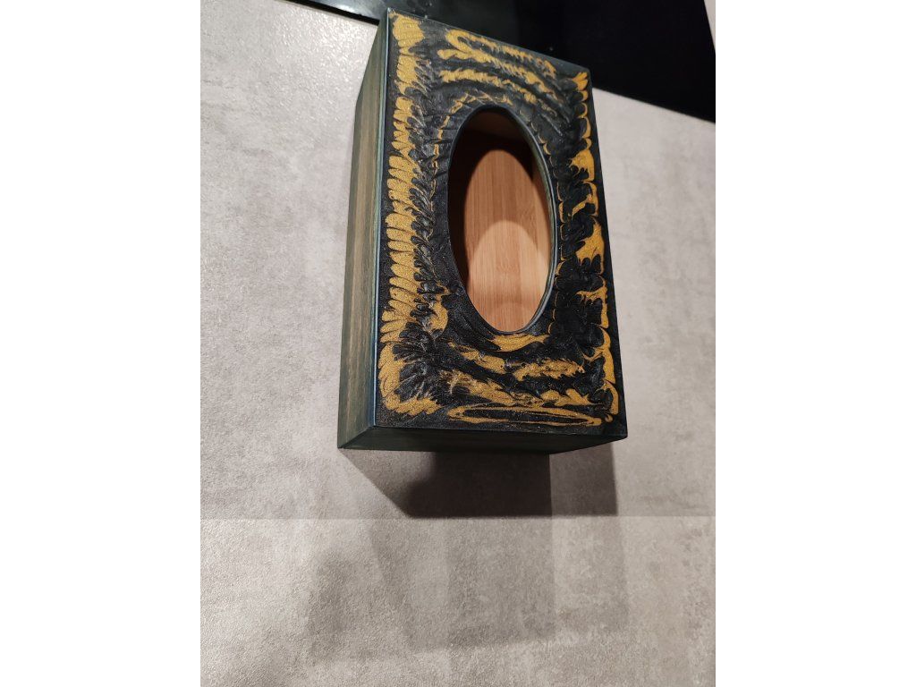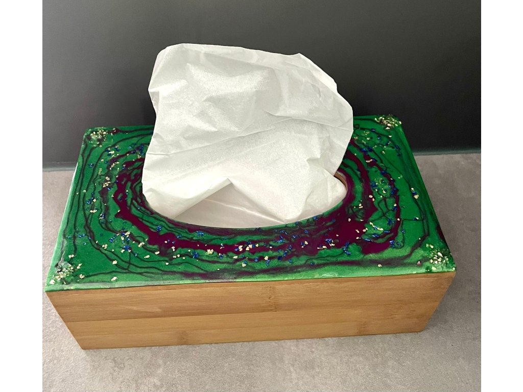 Dřevěný box na kapesníky s víkem z pryskyřice.