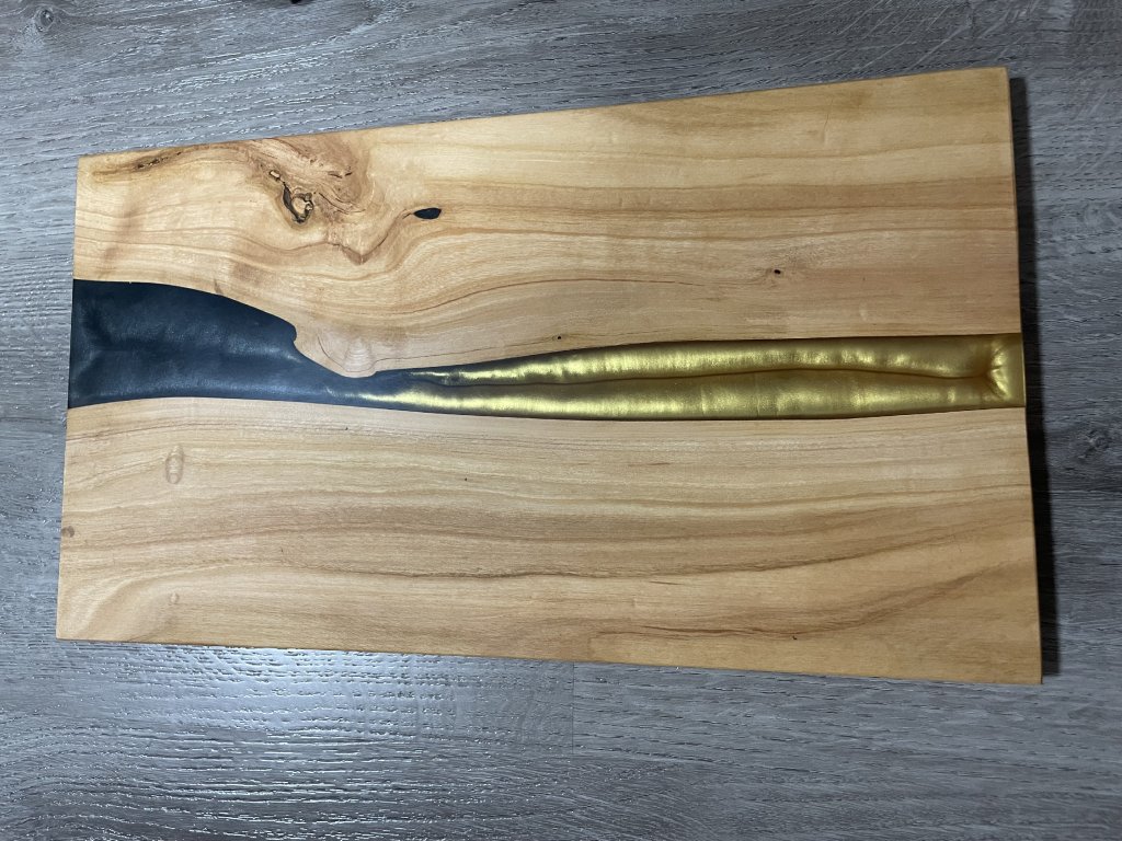Servírovací prkénko z jasanovéh dřeva s epoxidovou pryskyřicí. Ošetřeno olejem pro styk s potravinami. Rozměry: 43 x 24 cm.