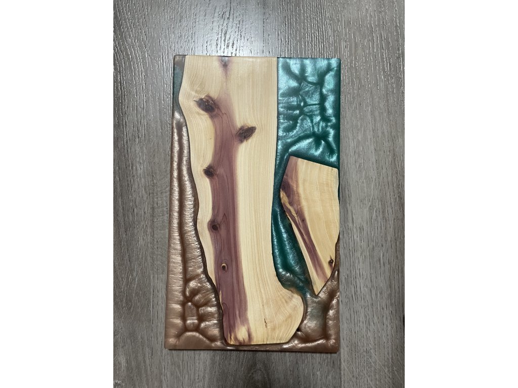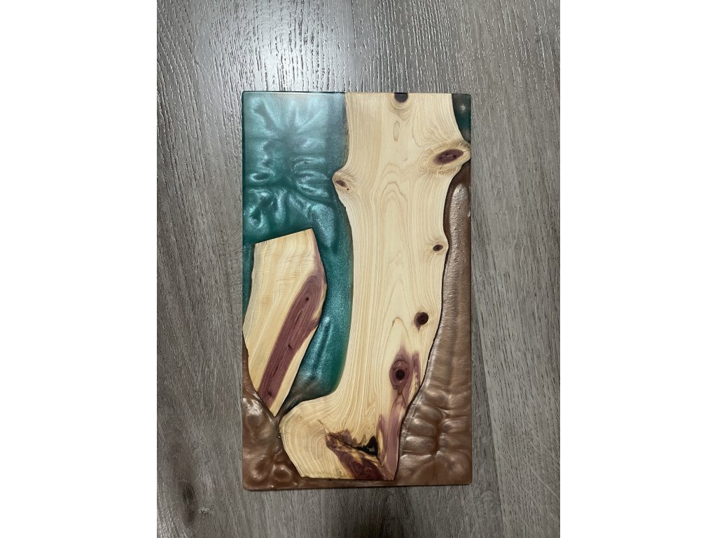 Servírovací prkénko s epoxidovou prskyřicí ošetřené olejem pro styk s potravinami. Rozměry 35 cm x 20 cm.