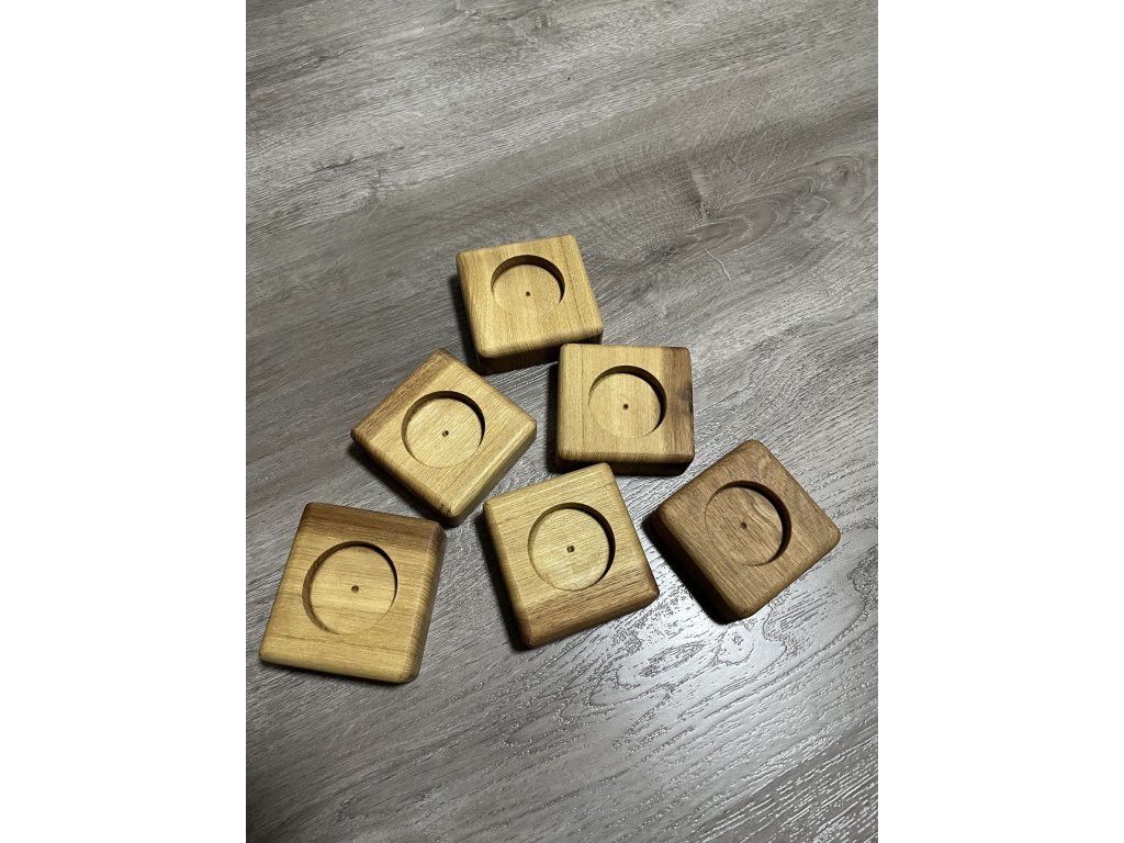 Dřevěný svícen z jilmového, jasanového a akátového dřeva. Rozměry 9 cm x 8 cm.